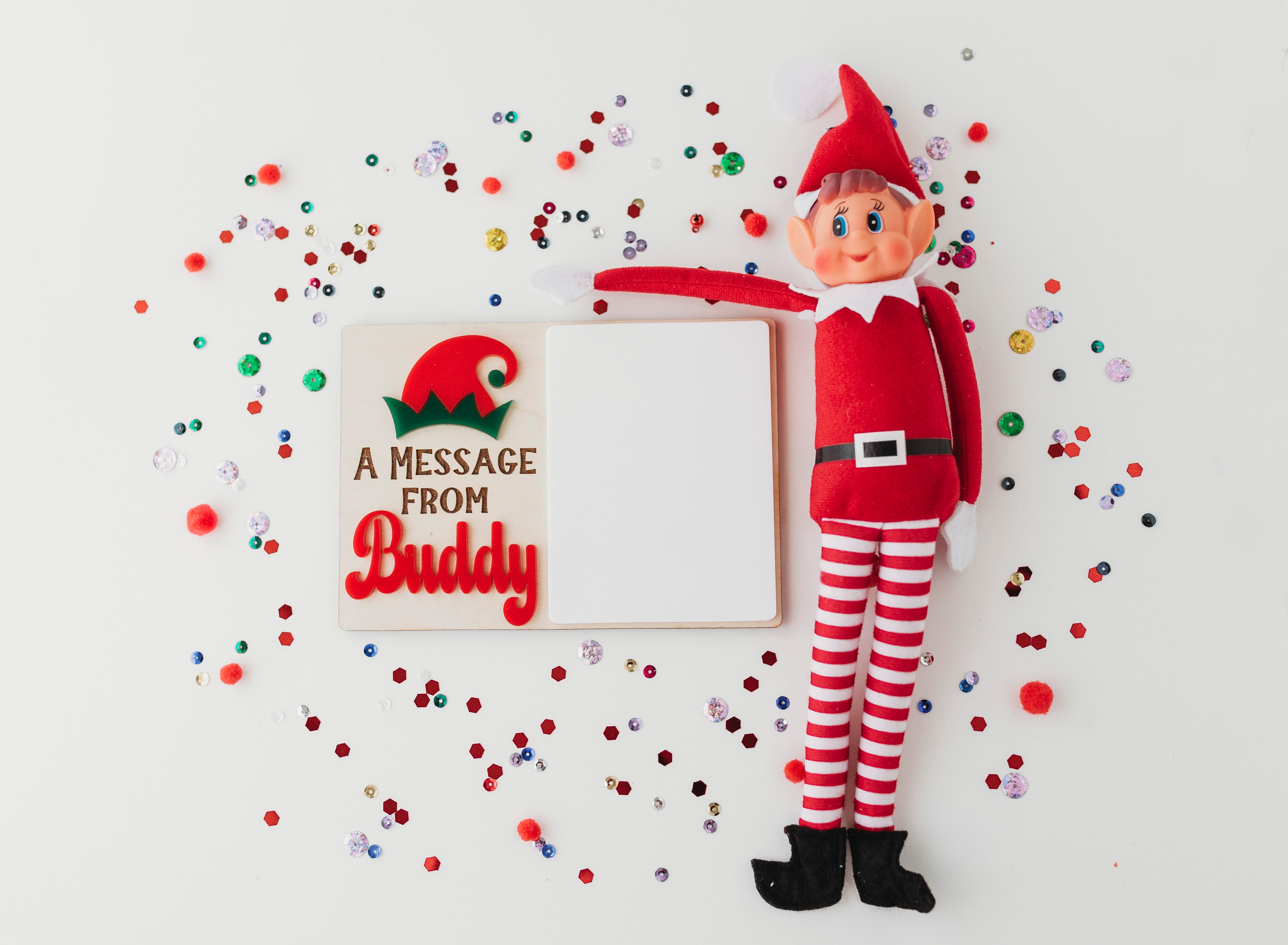 Left side showcases layered elf hat, and your elf's name. This helps keep the Christmas Magic alive, knowing the note came from their specific elf!
