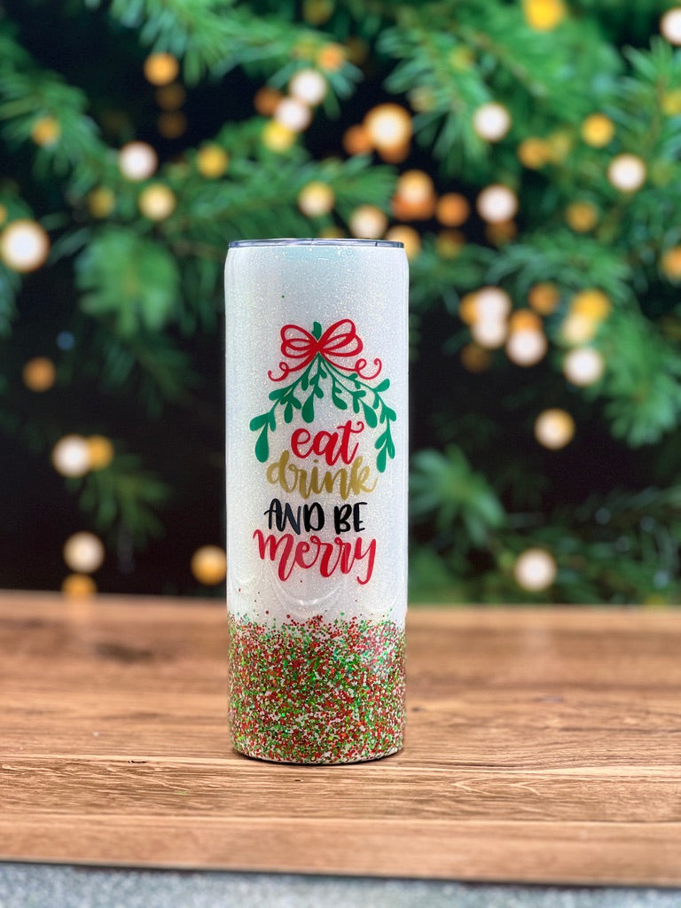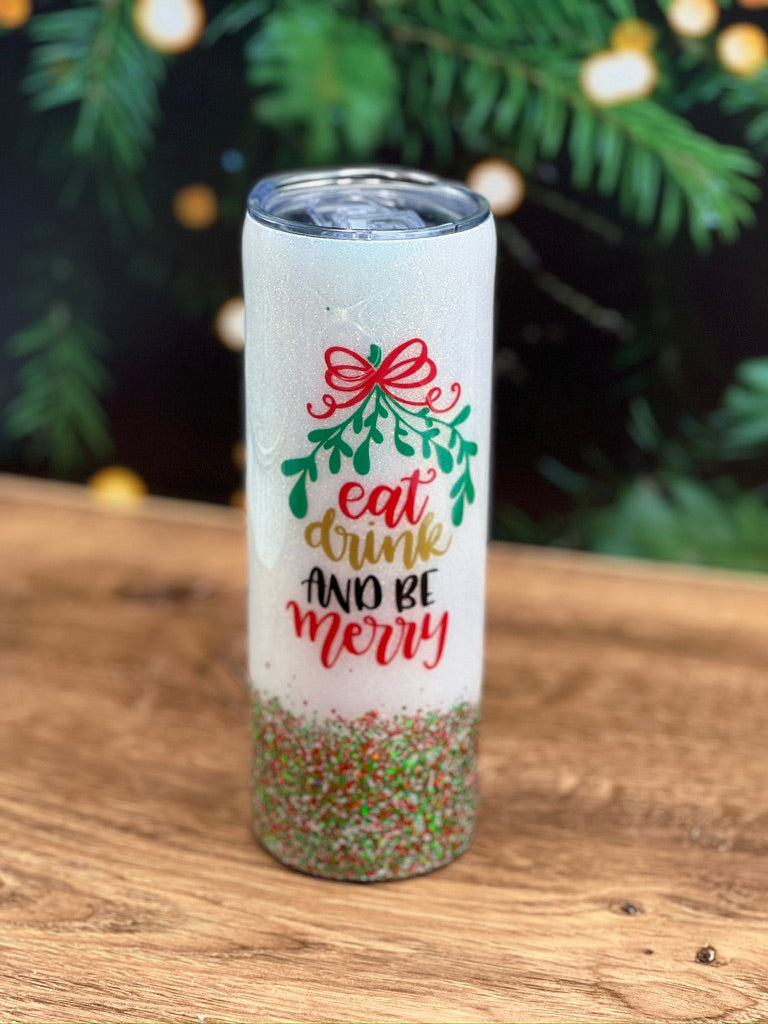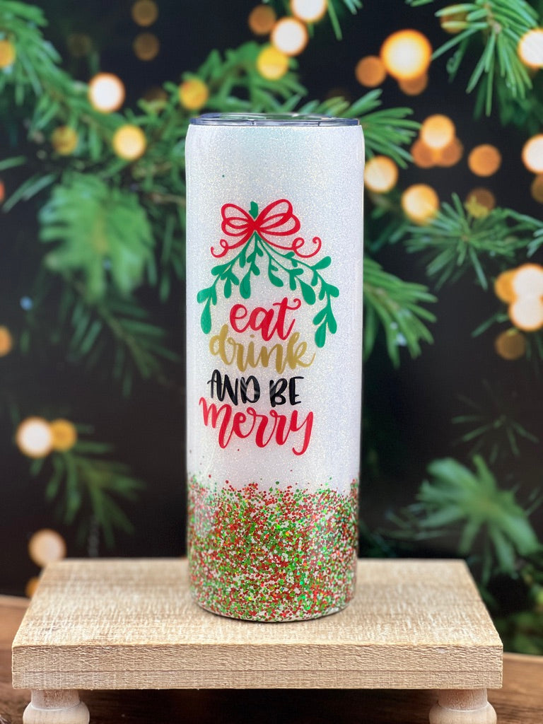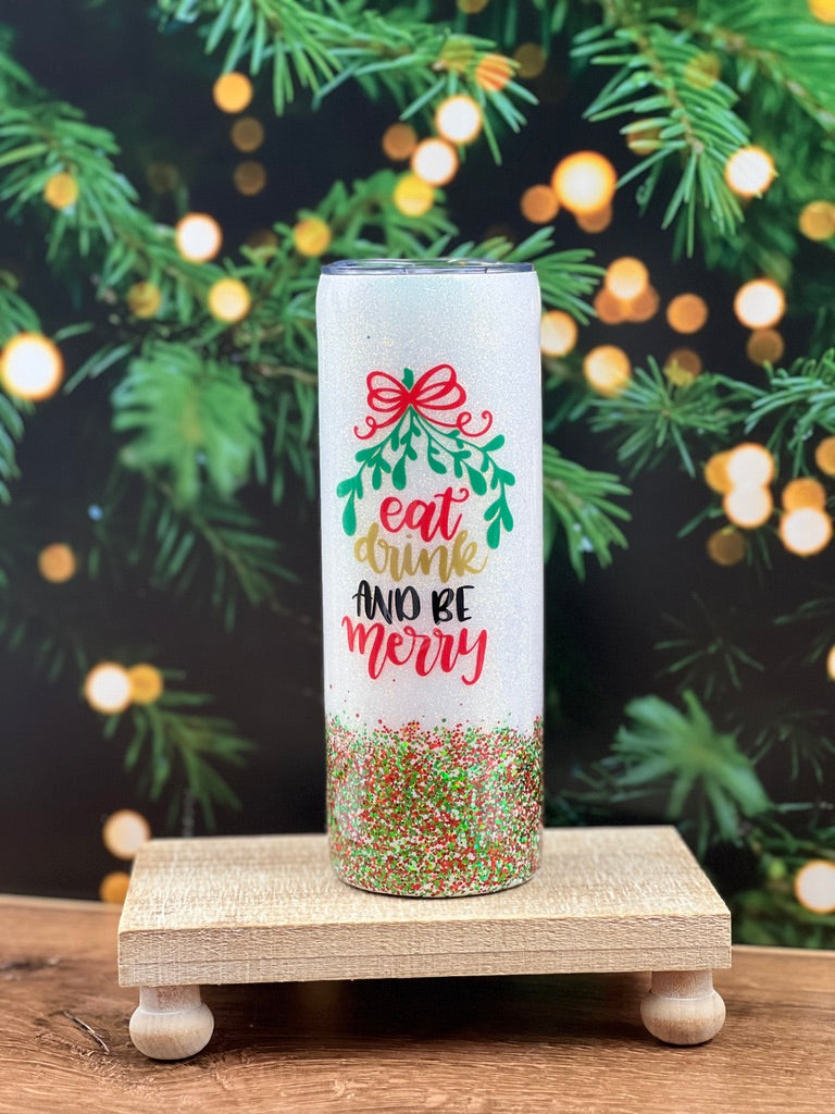 This Christmas Tumbler will get you in the spirit to Eat, Drink & Be Merry!