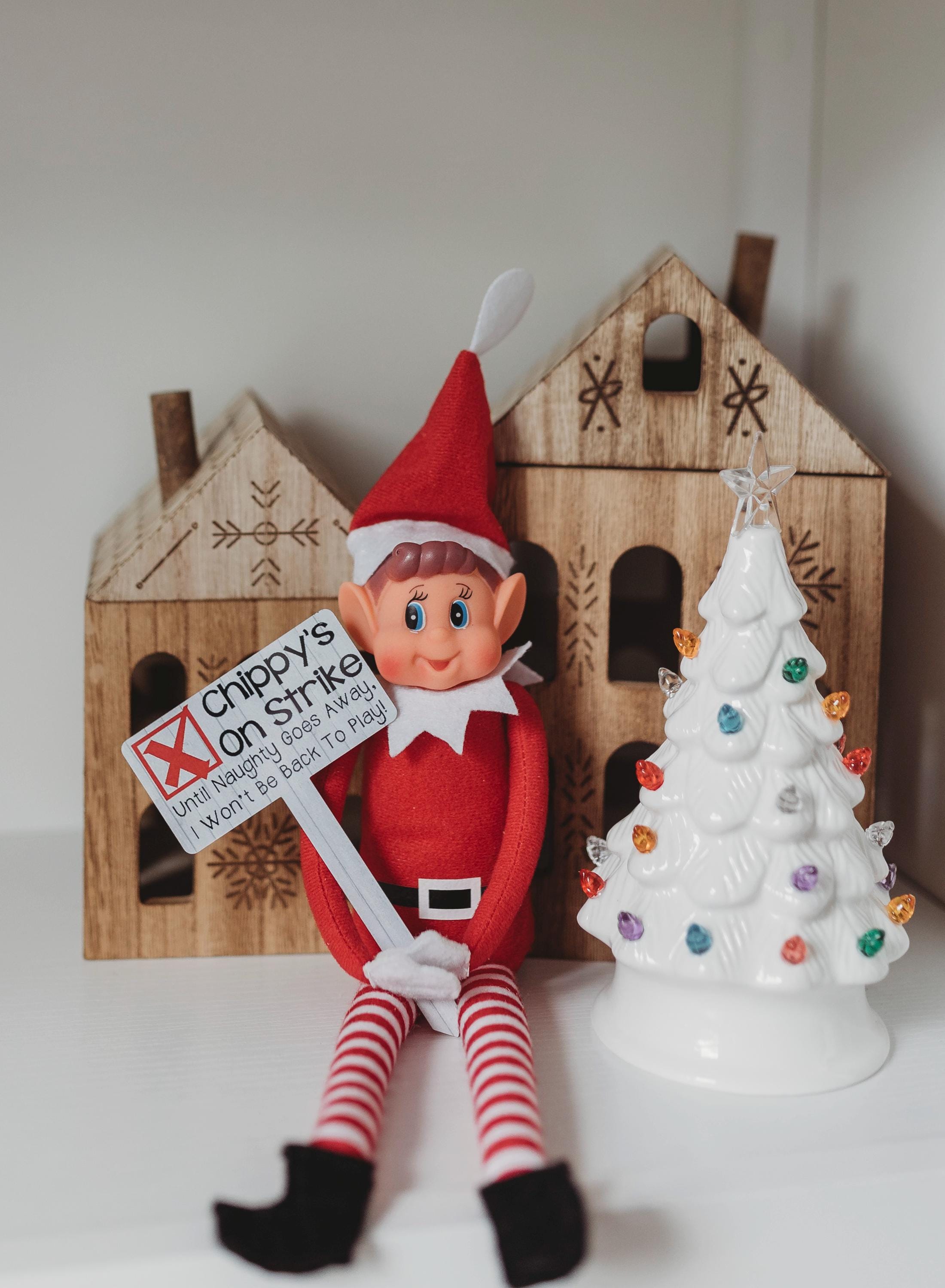 Personalized sign for your elf to pose with, to let kids know that he's on strike until good behavior returns!